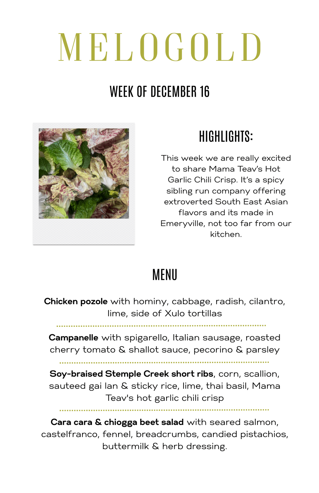 Melogold is a small group of Bay Area chefs who are committed to well-sourced, sustainable food systems and passionate about sharing good food with our community.